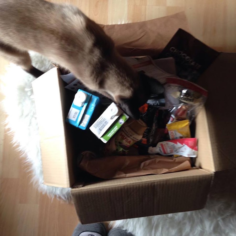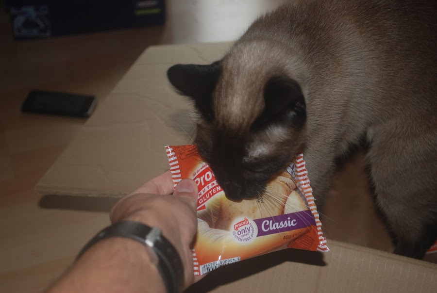 Haru nos la lió cuando abrimos esta caja. En ella venían dos panes de molde que no sabemos porque, pero a haru casi le vuelven loco. Se metió en la caja y lo destrozó todo hasta que los encontró. Luego los cogió y huyó con ellos.