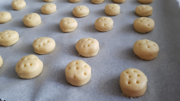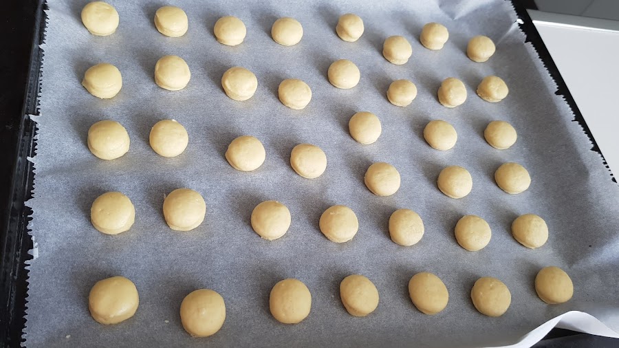 6. - Las vamos colocando en una bandeja de horno con papel de hornear.