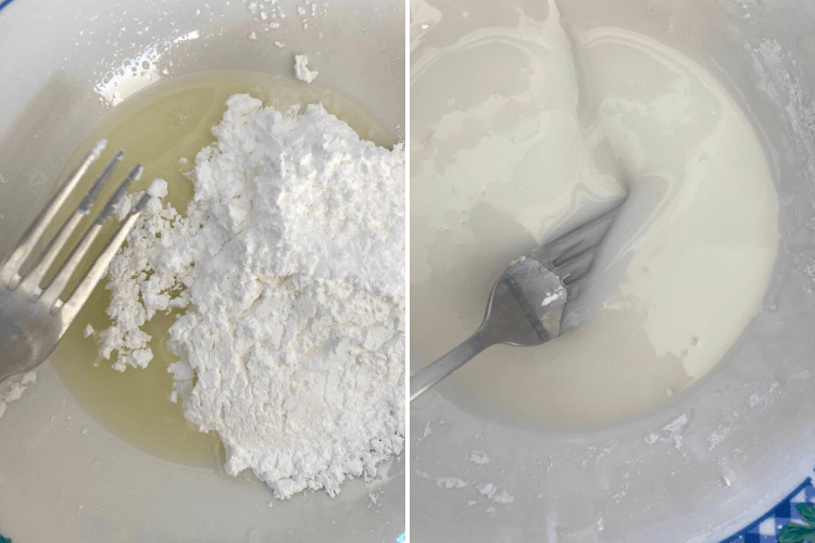 Juntar la mezcla seca (paso 1) junto con la mezcla líquida (2 y 3)