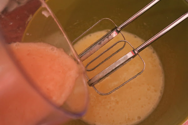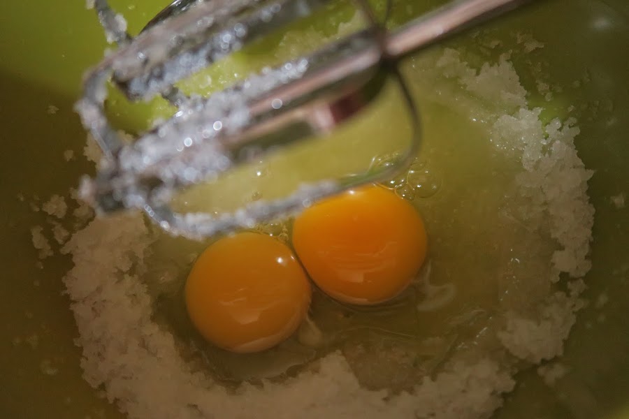 Luego, en un bowl, añadir las 3 cucharadas de azúcar y las 3 cucharadas de aceite. Mezclar bien y agregar los dos huevos. Con la ayuda de la batidora, manual o eléctrica, revolver.