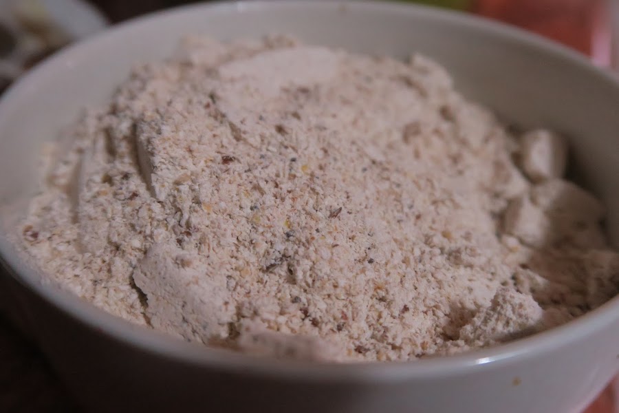 En primer lugar, si no tenemos la harina de avena lista, debemos molerla en una procesadora o juguera (en seco). La mía era con multismillas, por lo que se ven unos puntitos más oscuros.