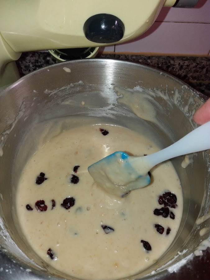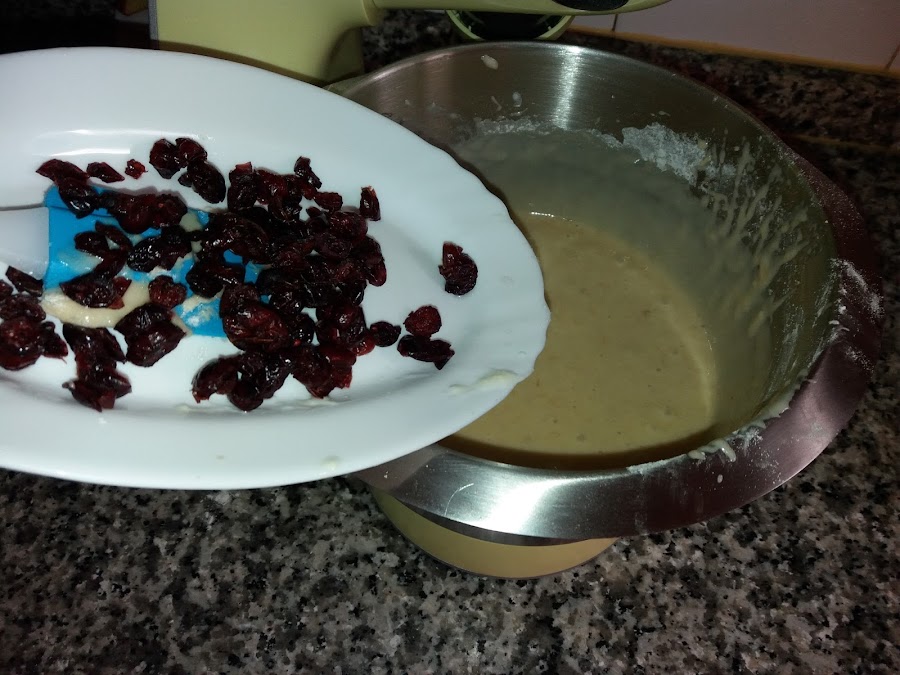 Ahora paramos la batidora y añadimos chips de chocolate ( o como en este caso los arandanos ,yo siempre me decanto por estos ya que le dan un toque muy especial