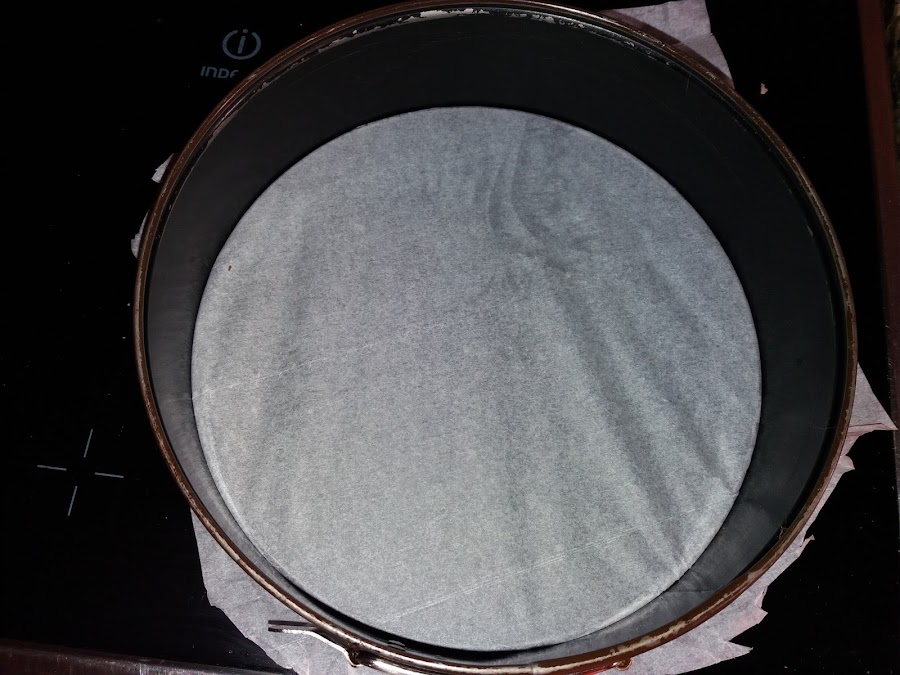 Forramos un molde desmoldable poniendo papel para horno en el fondo y engrasamos las paredes con un poco de mantequilla , ponemos la mezcla y llevamos al horno que habremos precalentado a 170ª