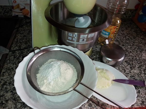 Empezamos tamizando la harina junto con la levadura y la reservamos,