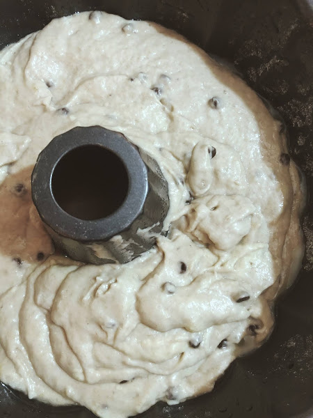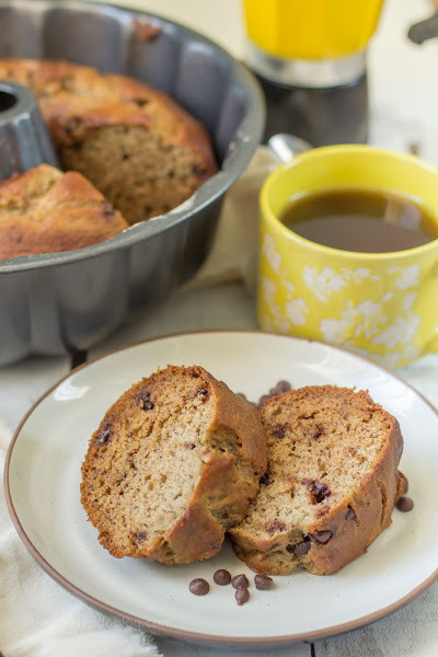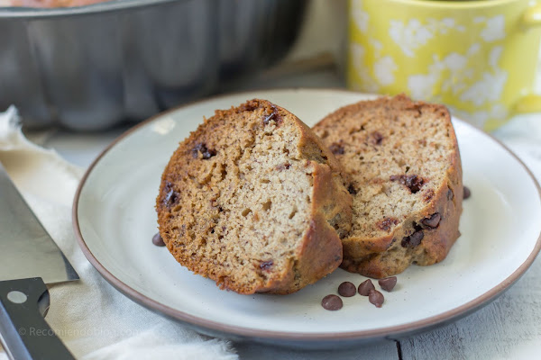 Cuando estaba estudiando, cerca de mi universidad había un restaurante de comida vegetariana donde vendían menús que eran comprados en gran parte por estudiantes y trabajadores del sector. La comida era muy rica y contundente, además de económica. También vendían muffins y tenían uno de plátano (banana) con chips de chocolate que amaba. Un día vi en su página de Facebook que publicaron la receta del queque de este sabor y me decidí a prepararlo y compartirlo con una de mis mejores amigas que en ese tiempo llevaba una dieta vegetariana.