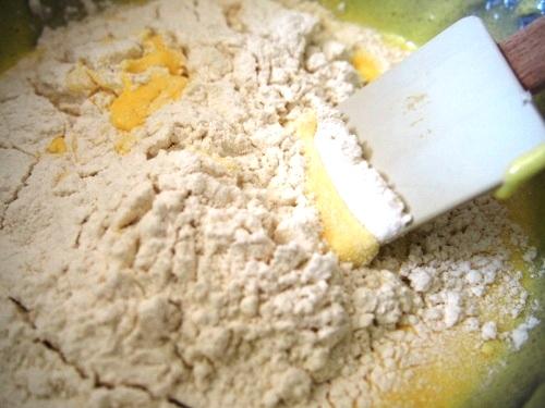 Posteriormente incorporaremos la harina cernida y la incorporaremos en una primera instancia con una espátula. Cuando la harina este incorporada batiremos aproximadamente 2 minutos, hasta obtener una preparación lo mas lisa posible.