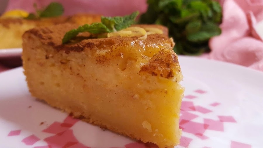 4.- Untamos un molde con mantequilla. Horneamos 35 o 40 minutos a 180ºC, dejamos enfriar la quesada. la espolvoreamos con canela, decoramos con la ralladura de limón y unas hojas de menta o hierbabuena fresca.
