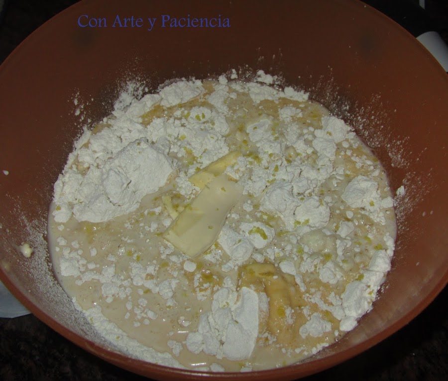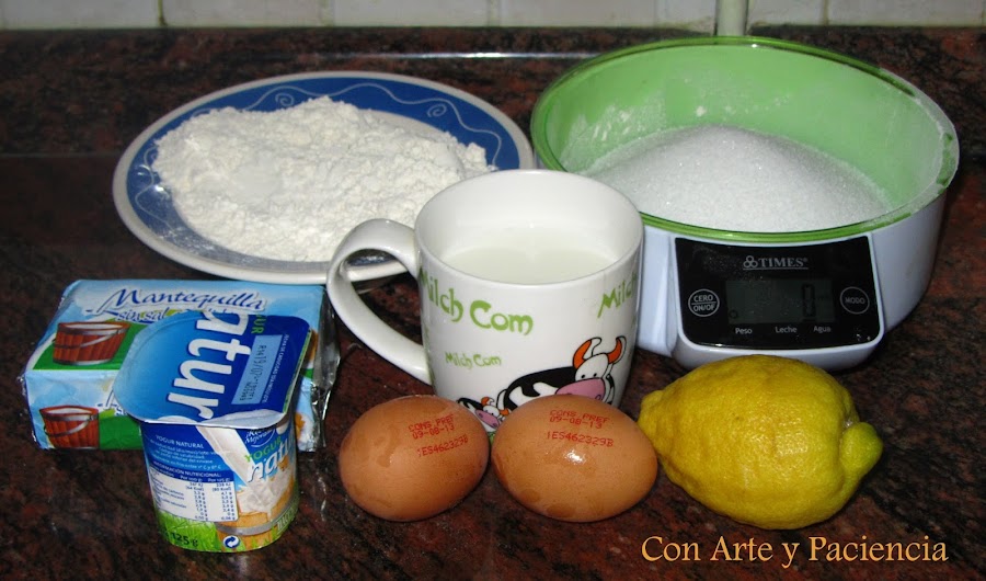 Se baten todos ingredientes juntos, la mantequilla a temperatura ambiente, hasta lograr una crema homogénea. Se vierte en un molde rectangular y bajito engrasado con un poco de aceite, llenando hasta 3/4 de su capacidad y se hornea a 150-170 grados vigilando hasta que se dore por arriba, más o menos una hora.