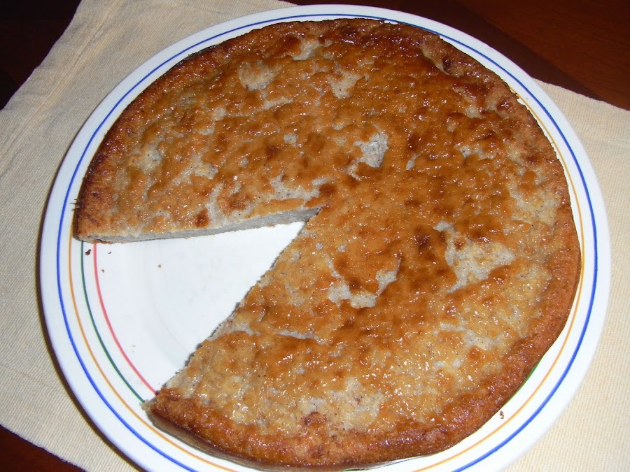Se bate todo con la batidora eléctrica y se pone en un molde. Se mete en el horno a 160 grados unos 30 minutos hasta que esté cuajada. Cuando la pincheis tiene que salir limpio el cuchillo aunque no seco porque no tiene la textura de un bizcocho.