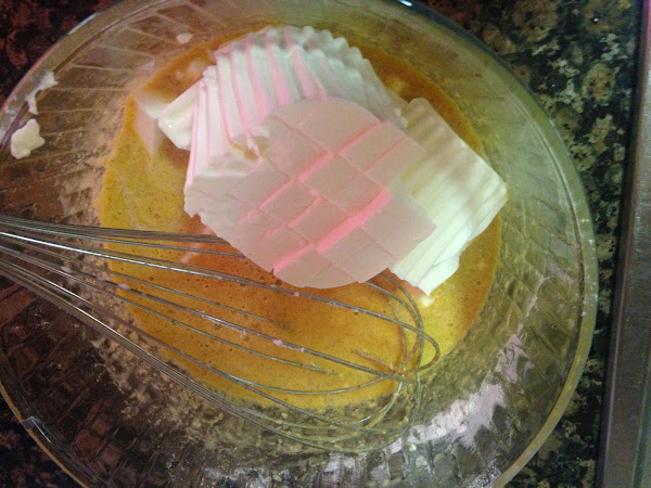 En un bol pondremos los huevos, añadir la mantequilla a punto de pomada y el azúcar.