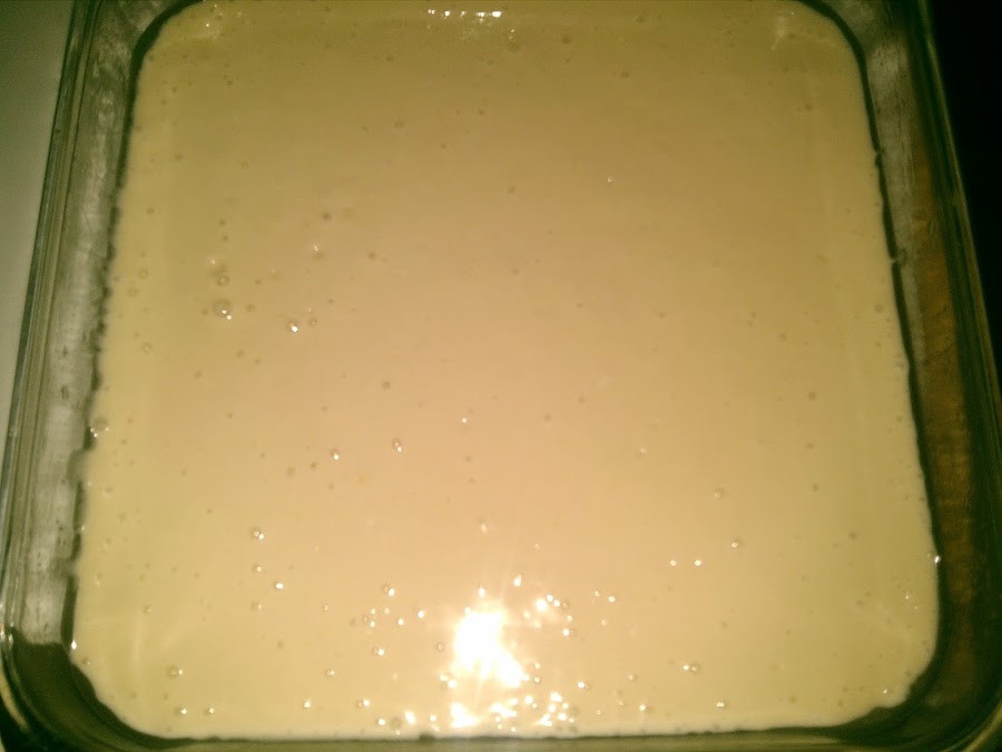 Vaciar en un molde previamente enmantequillado y levar al horno a 170° por 60 minutos o hasta que cuaje, va a depender del molde en realidad, por que a mi me sobro e hice otros en un molde pequeño y se demoro menos tiempo.