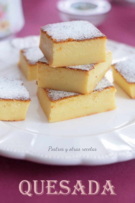 No he podido resistirme a hacer esta deliciosa Quesada así que la vi en el libro de Alma Obregón "Objetivo Cheesecake Perfecto". Veréis lo fácil que es de preparar y comprobaréis lo buenísima que está. Es de esos postres que una vez que lo pruebas no te puedes conformar con un sólo trozo... Avisados quedáis!