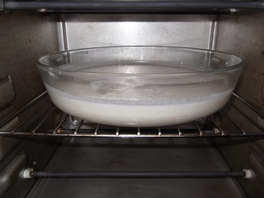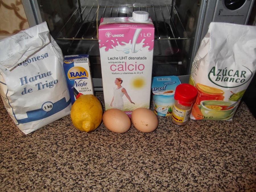 En un bol echamos los huevos y los batimos, luego añadimos el yogurt natural y seguimos batiendo. Posteriormente se añade el azúcar y se continúa batiendo, después la harina, la leche, la nata (crema de leche) líquida, la ralladura de limón y la canela, que podéis echar al gusto.
