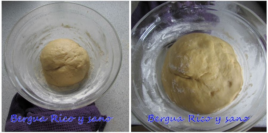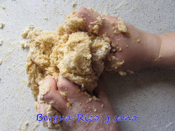 3. Mezclamos bien con las manos hasta que quede una masa homogénea y elástica que no se nos pegue a las manos. (También se puede hacer con varillas en un cuenco)