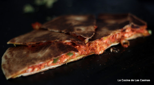 Hace un tiempo probamos sus Quesadillas con Cochinita Pibil y me acordé de ellas, hoy hice una pequeña réplica con Pollo, digo pequeña porque las hice minis y tambien una grande, el resultado ha tenido mucho éxito.