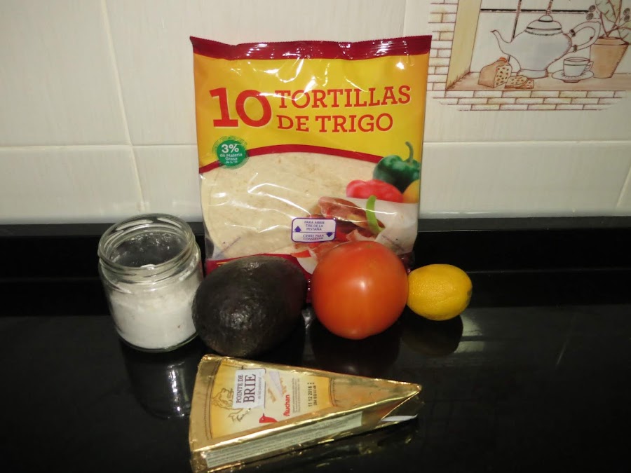 Ponemos una par de tortillas de trigo a calentar en la sartén, cuando ya estén calientes, las sacamos y les untamos el aguacate que habremos pelado y chafado. Echamos un poco de zumo de limón por encima, sal y unos trocitos de tomate.