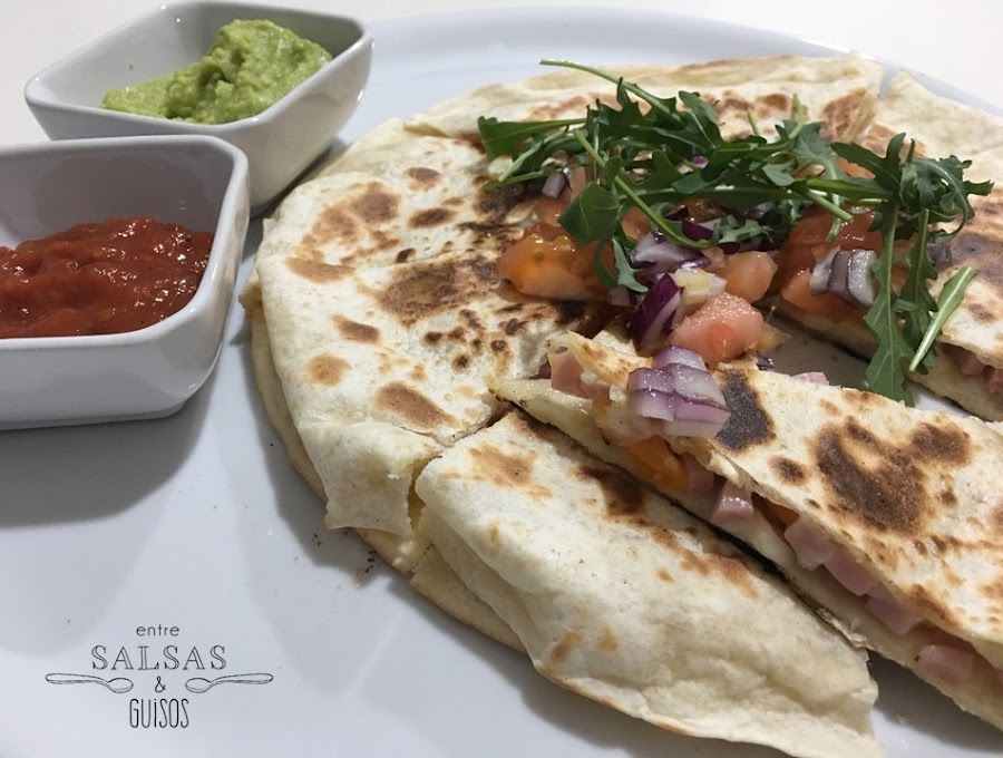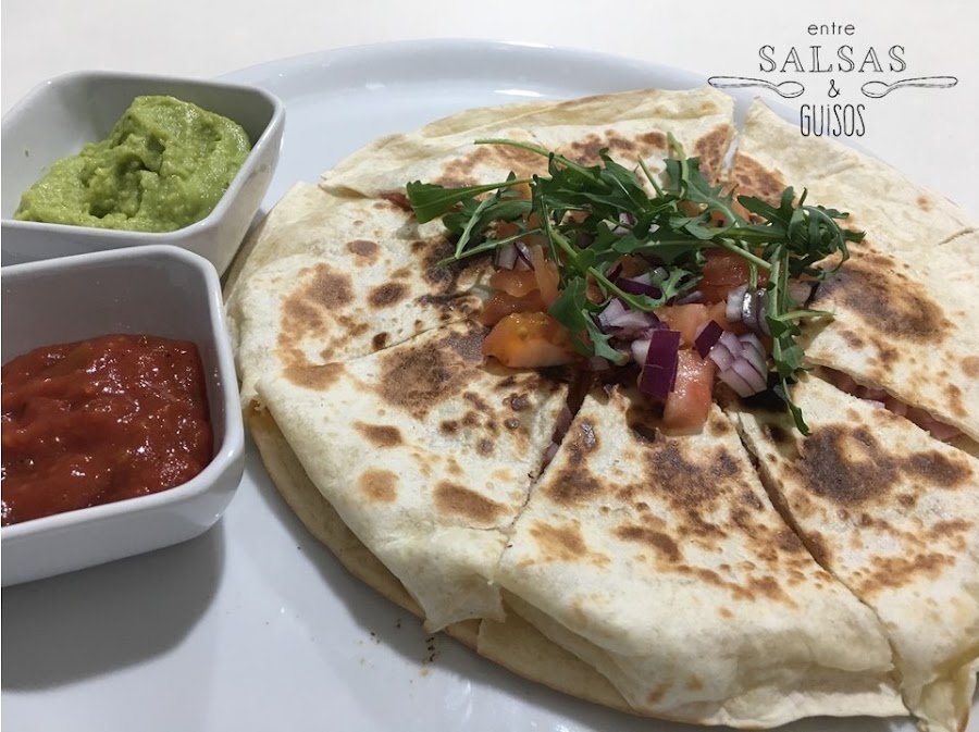Yo no soy de restaurantes de comida rápida, pero volviendo de Madrid teníamos que comer algo antes de subir al AVE, así que buscamos algo rapidito. Comimos en la misma Estación de Atocha, no recuerdo el nombre del restaurante, pero me llamó la atención la foto y pedí una quesadilla. Desde entonces, la verdad es que en casa ya la hemos comido varias veces.