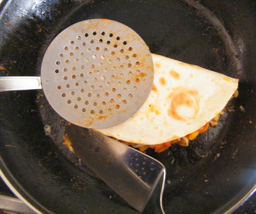 ¡Hoy toca mexicano! Bueno, un poco Tex-Mex, pero en cualquier caso hemos acabado chupándonos los dedos. Para los más puristas, la quesadilla es sólo queso y masa de harina de maíz; si se le añaden otros ingredientes, se llama dobladilla. No obstante, el término "quesadilla" se ha generalizado mucho con el tiempo, pero lo que está claro es que en una quesadilla, la tortilla se dobla sobre sí misma y el protagonista es el queso. Ñam ñam ñam