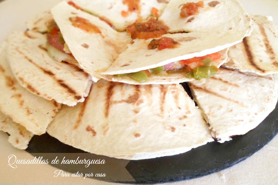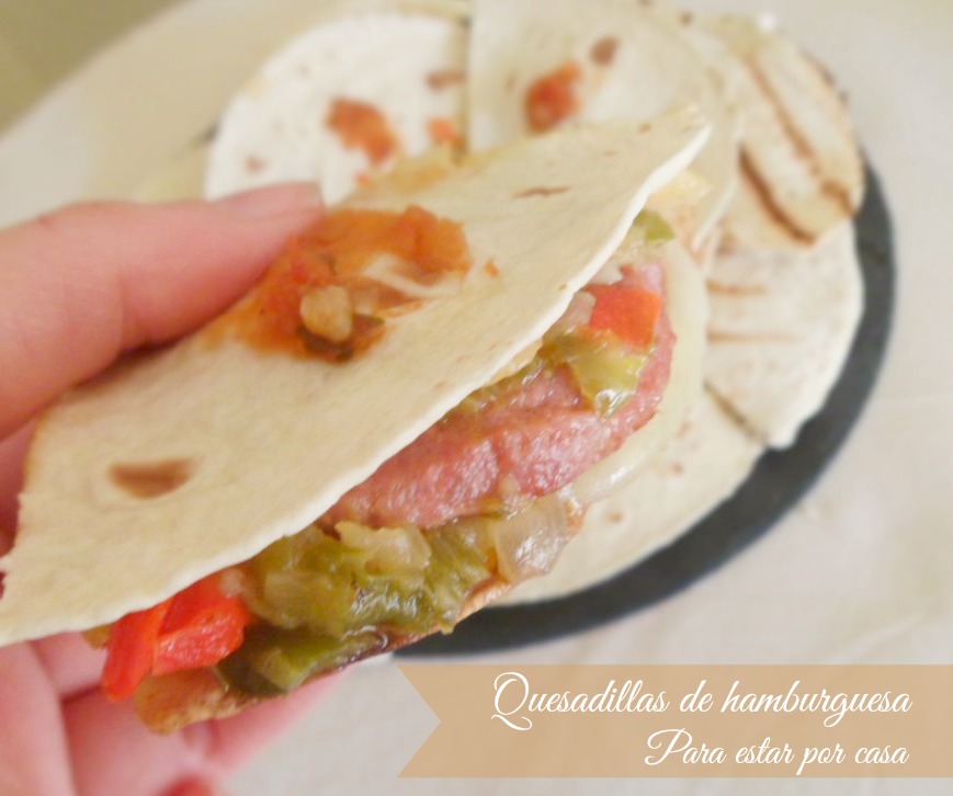 Las quesadillas que os dejo las he preparado siguiendo los gustos de casa, con hamburguesas, verduritas y salsa mexicana picante. Pero no hace falta seguir la receta al pie de la letra en cuanto al relleno, ya os digo que podéis rellenarlas como se os antoje.
