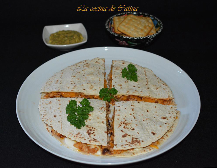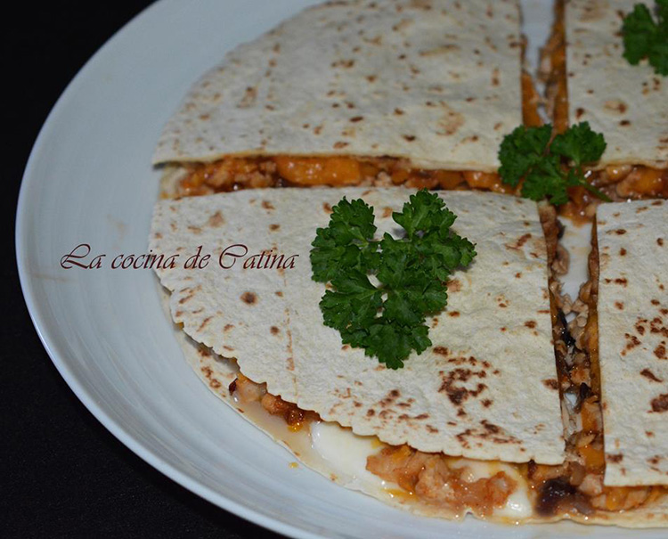 La quesadilla es un plato mejicano que consiste en una tortilla de maíz o de trigo que dependiendo de la región puede estar rellena de queso o de otros ingredientes, y que se come caliente. Con esta receta participo en el reto Cooking The Chef del mes de marzo de 2019. Ingredientes: