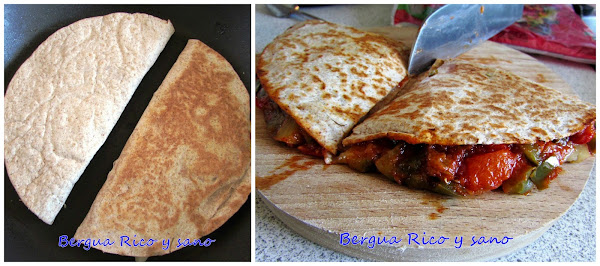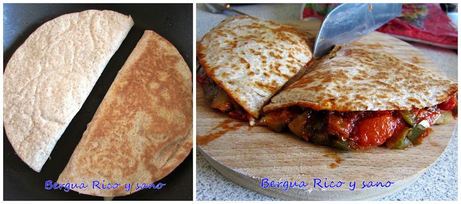 7. En una sartén caliente vamos a cocinar las quesadillas a fuego medio-alto durante 3-4 minutos por cada lado. Recomiendo poner antes de cocinar cada quesadilla un mínimo de aceite en la sartén con ayuda de un spray de cocina.
