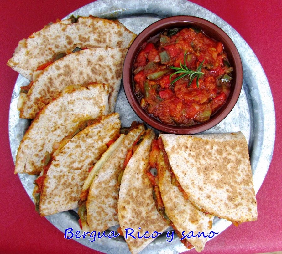 Hoy toca cocina fusión y se me ha ocurrido combinar un clásico mexicano con un relleno muy castellano, un delicioso pisto manchego casero y un excelente queso artesano de oveja cortesía de mi amiga Mins y sus papis, a quienes dedico esta receta =) El queso está de fábula y, si os pasáis por Calzada de Calatrava, en Ciudad Real, y queréis comprar un buen manchego, buscad a Raimundo Jesús Espinosa González. El invento ha sido todo un éxito y lo repetiremos pronto ^^ Para 2 personas si es plato único o para compartir entre varios de picoteo: