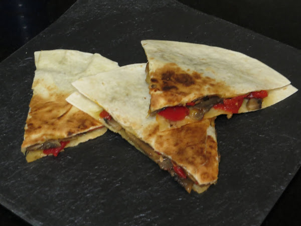 Ponemos la tortilla de trigo en una sartén añadimos el relleno, tapamos y la cocinamos por ambos lados y ya están listas para comer. Las podéis acompañar con vuestra salsa favorita como guacamole.