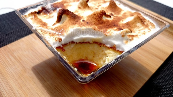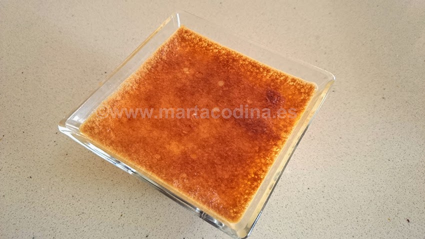 Ponemos una capa encima del flan y, con la base de la cuchara, formamos pequeños picos. Doramos con el soplete.