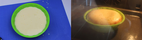 Vertemos la masa en el molde y lo metemos en el horno precalentado a 170ºC y al baño maría (ponemos el agua en un recipiente o en la bandeja del horno) y lo horneamos durante 50 minutos con calor arriba y abajo sin aire.
