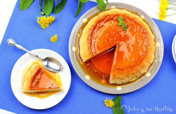 Lo sacamos del horno y lo dejamos enfriar. Lo desmoldamos y servimos tal cual, que está buenísimo o acompañado de fruta o nata montada (crema de leche).