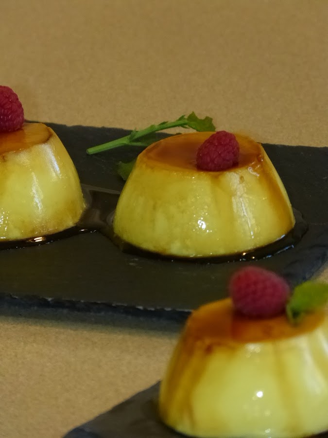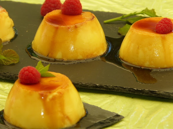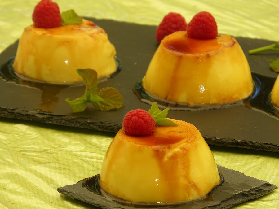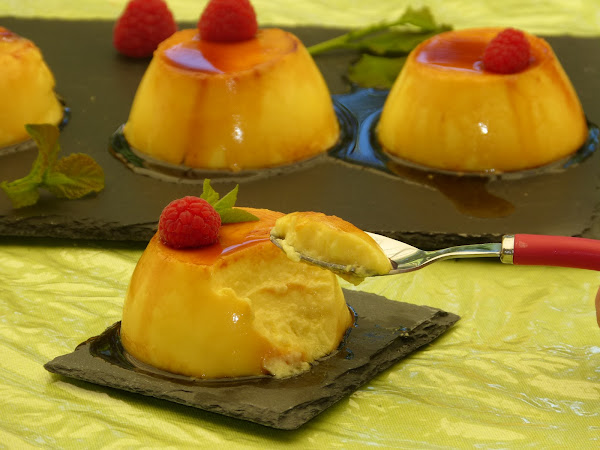 Pues nada más fácil. Se bate todo hasta que quede la mezcla bien integrada. Caramelizamos moldes individuales (o uno grande, como más os guste) y vertemos la preparación.