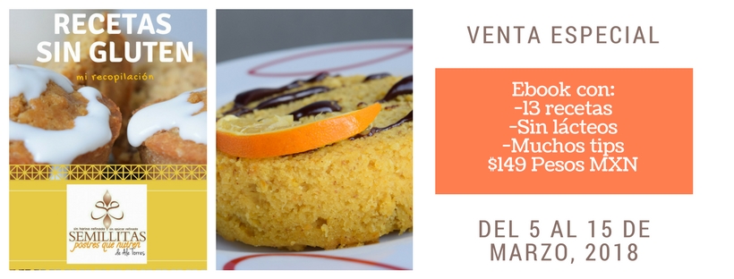 Espero les guste tanto como a mí. y que tengan un gran inicio de semana.... ¡Por cierto! aprovecho para comentarles que sólo por estos días, mi Ebook "Recetas sin gluten", estará a la venta. Son 13 recetas de postres, panes y galletas con ingredientes nutritivos y naturales, sin harinas, lácteos ni azúcar refinada. Además, en su compra, reciben 3 recetas más de regalo (2 de pan de caja y una tarta de chocolate) Pueden comprarlo aquí: Ebook RECETAS SIN GLUTEN