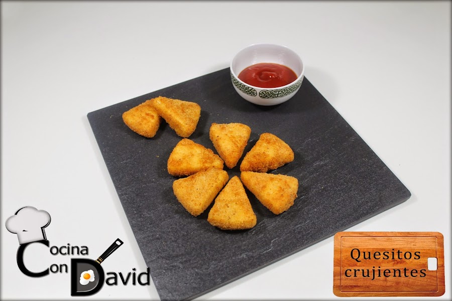 Se pueden acompañar como en mi caso con Ketchup, pero acepta cualquier salsa que os guste. Desde un alioli, una mayonesa, una mermelada de pimientos, una salsa picante, una barbacoa o la que sea vuestra favorita. Estos quesitos aceptan cualquier compañía.