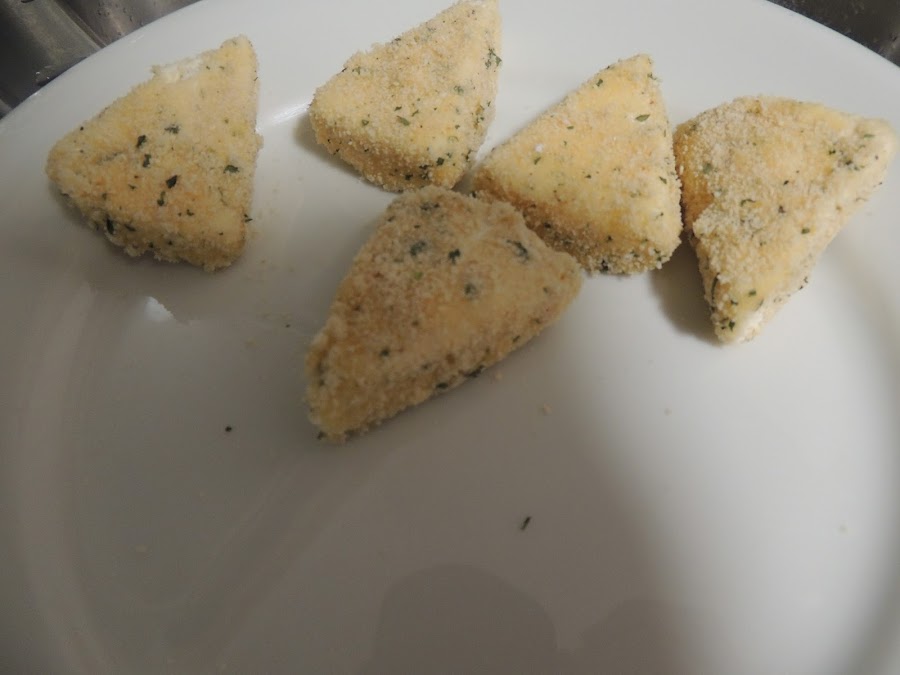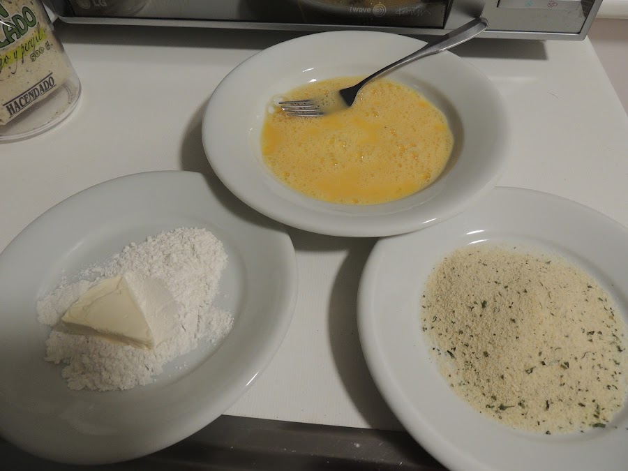 Empanamos los quesos como si de cualquier otra cosa se tratara, primero pasamos por harina, luego por huevo y por último por el pan rallado. Los dejamos todos en un plato preparados.