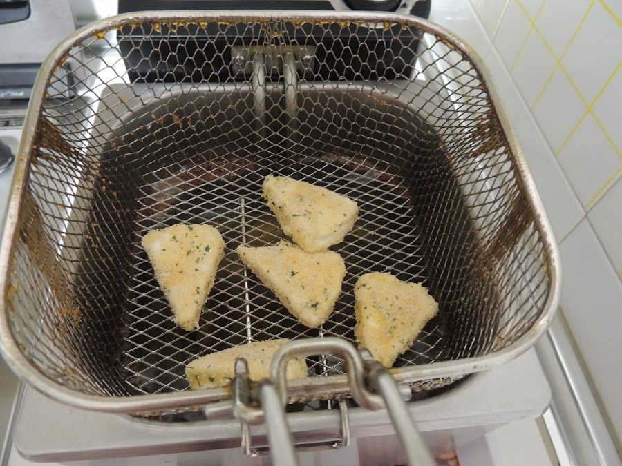 Los freímos en abundante aceite. Tardan muy poco, 2 ó 3 minutos. Hay que estar atento ya que si se calientan demasiado el queso podría salir y quedarnos un cascaron vacío.