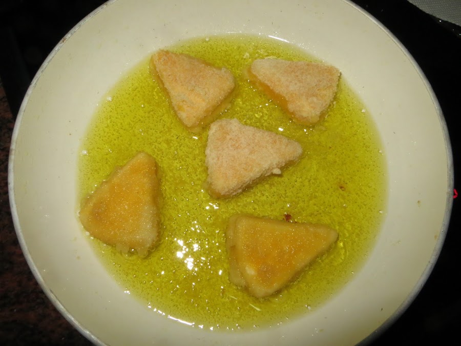 Metéis los quesitos rebozados durante quince minutos al congelador. Mientras tanto ponéis el aceite a calentar en una sartén y cuando esté caliente sacáis los quesitos y los vais friendo por tandas. Escurrís el aceite sobrante y los ponéis en el plato acompañado de mermelada o vuestra salsa favorita.