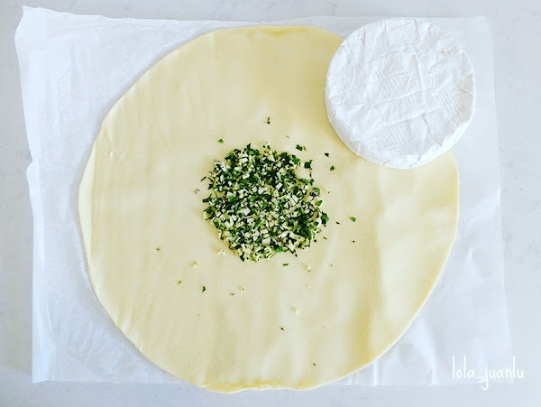 A continuación, colocamos el queso sobre la mezcla anterior y plegamos la masa por encima presionando para sellarla. Si vemos que sobra masa, podemos cortarla y usarla para la decoración.