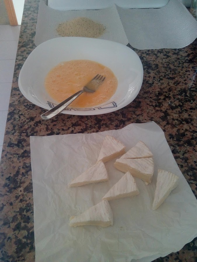 Pasamos los quesitos primero por huevo y despues por pan rallado.