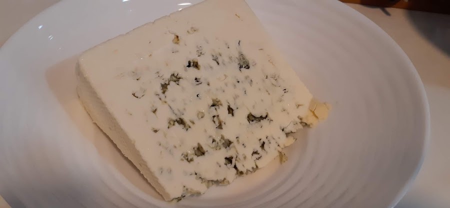 Tengo que aprender a hacer queso cremoso, pero mientras eso llega vi que tenía en la nevera una cuña de queso azul y una tarrina de queso cremoso a las finas hierbas. Me confundí al comprarla y todavía no le había dado uso.