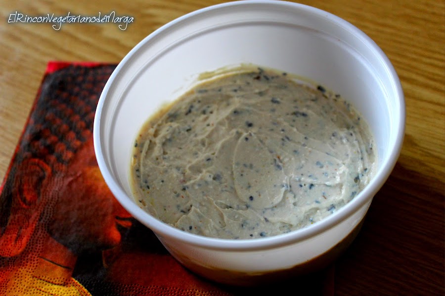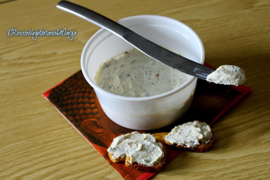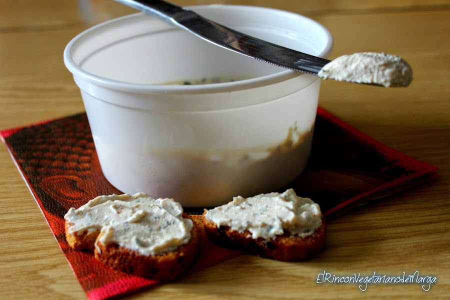 Mezclamos bien, cerramos la gasa y la ponemos en un bol enganchada a una barra o cuchara de cocina, de modo que la base de la gasa no toque el fondo del bol, para que así el yogur vaya perdiendo el suero y quede solo la parte cremosa, que será nuestro quesito untable.