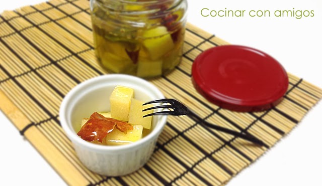 Queso en aceite aromatizado con guindilla