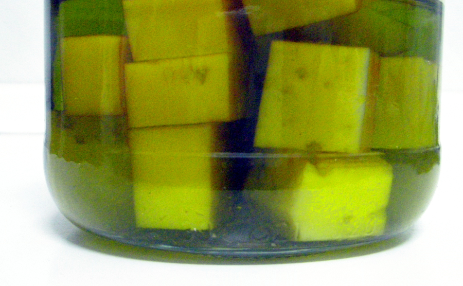 Si tenemos una pieza grande de queso a la que no le vamos a dar uso la podemos conservar en aceite de oliva, es una forma muy antigua para conservar queso y además tendremos un delicioso aperitivo o tapa.