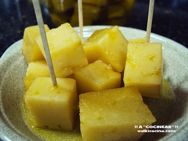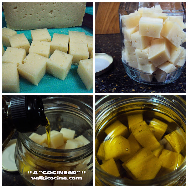 Un buen queso de oveja curado ..., un buen aceite de oliva virgen extra, y si quieres alguna hierba para aromatizar como romero o tomillo ... ; es simplemente lo que necesitamos para poder disfrutar de un estupendo y sencillo aperitivo, que siempre tendremos listo para servir.