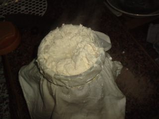 Fuera del fuego, añadir el zumo del limon y remover un poco. Enseguida vamos viendo que la leche se corta, hay que echarla sobre una servilleta fina sujeta a un recipiente.