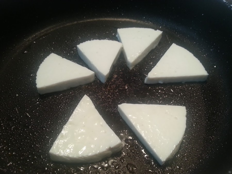3. - Una vez esté bien caliente la sartén, vamos colocando los trozos de queso, y cuando terminemos de colocar el ultimo trozo, le damos la vuelta y servimos.
