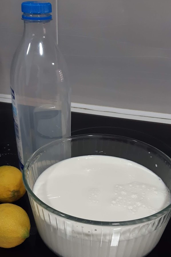 4.- Dejamos enfriar durante 30 minutos, para que baje la temperatura y se separe bien el suero.