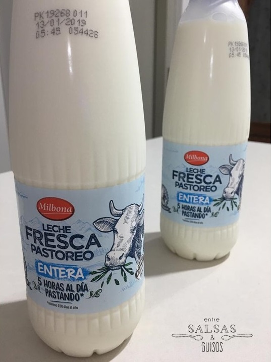En cuanto a la leche, debe ser Leche Fresca Pasteurizada ( de la que está en el refrigerado ), yo he usado hasta ahora la entera. De momento he probado con dos marcas, la de LIDL y la de Mercadona, y tal como nos explica Virtudes en su blog, es verdad que la de LIDL separa mucho mejor el suero que la otra, a mi me gusta más, de momento no he probado otras marcas.