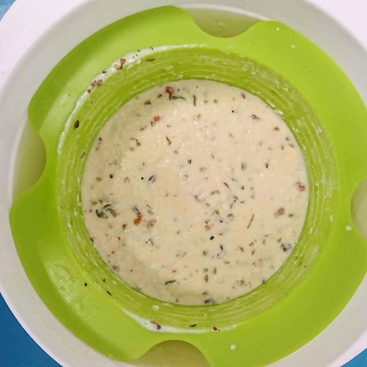 Escurrir la preparación, agrega las especias y los tomates secos cortados finamente, apretar con una cuchara para darle forma y dejar escurrir durante unas 2 horas. Dejar reposar en la nevera.