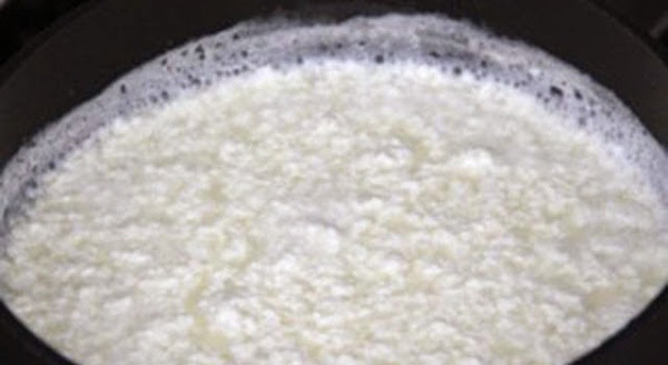 Llevamos a ebullición y observamos como la leche se corta bastante y hace espuma. Veremos que se separa en una parte sólida y otra líquida. Entonces apagamos el fuego y dejamos reposar otros 10 minutos.