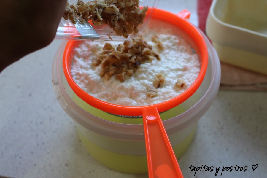 Agregamos ahora, si queremos, el ingrediente que nos guste. Yo he puesto nueces picaditas.